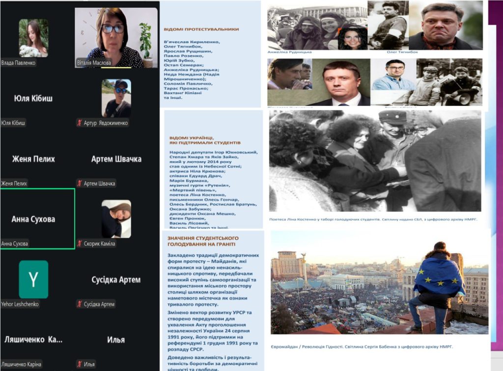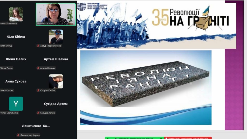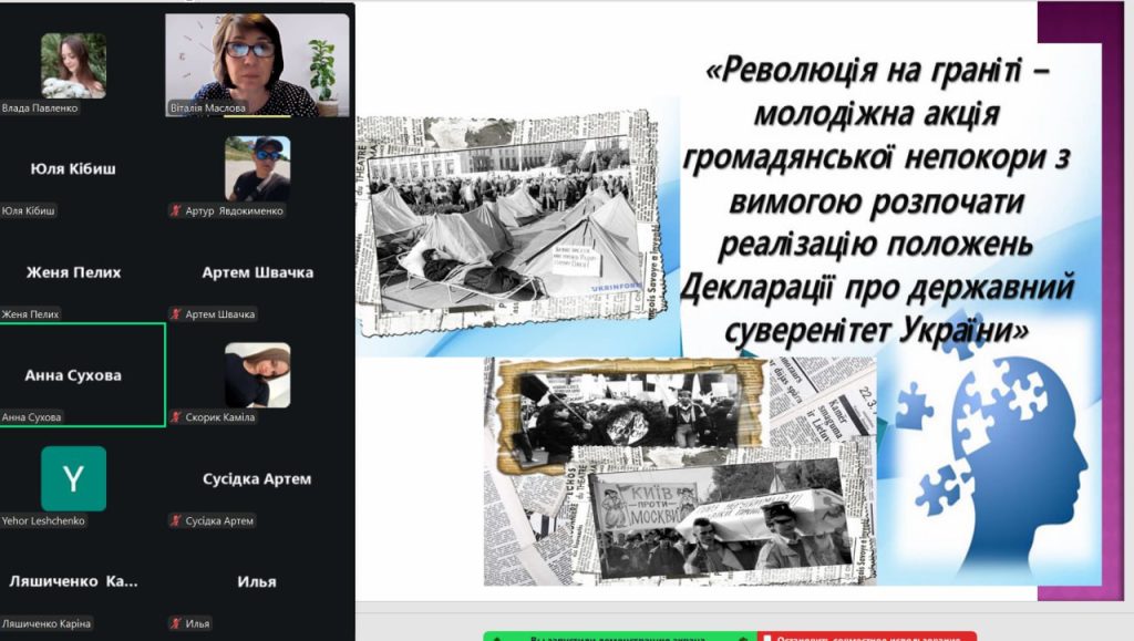 З метою утвердження ідеалів свободи і демократії, вшанування патріотизму й мужності української молоді, яка стала на захист національних інтересів та прав і свобод людини,з нагоди 35-річчя Революції на граніті у 10 класі було проведено інформаційний історичний форум “Молодь у боротьбі за відновлення української державності”