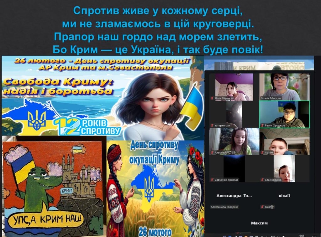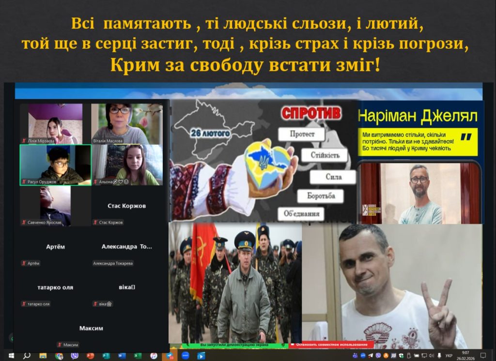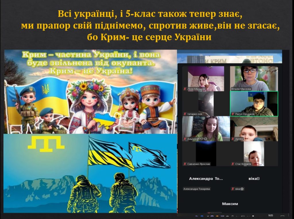 У 5 класі пройшов історичний хроноскоп «Крим — це Україна: 12 років незламності», під час якого учні пригадали події 2014 року, дізналися більше про історію Криму, його культурну спадщину та боротьбу кримськотатарського народу за свої права. Школярі обговорили важливість територіальної цілісності України та незламність українського народу у відстоюванні своєї свободи.