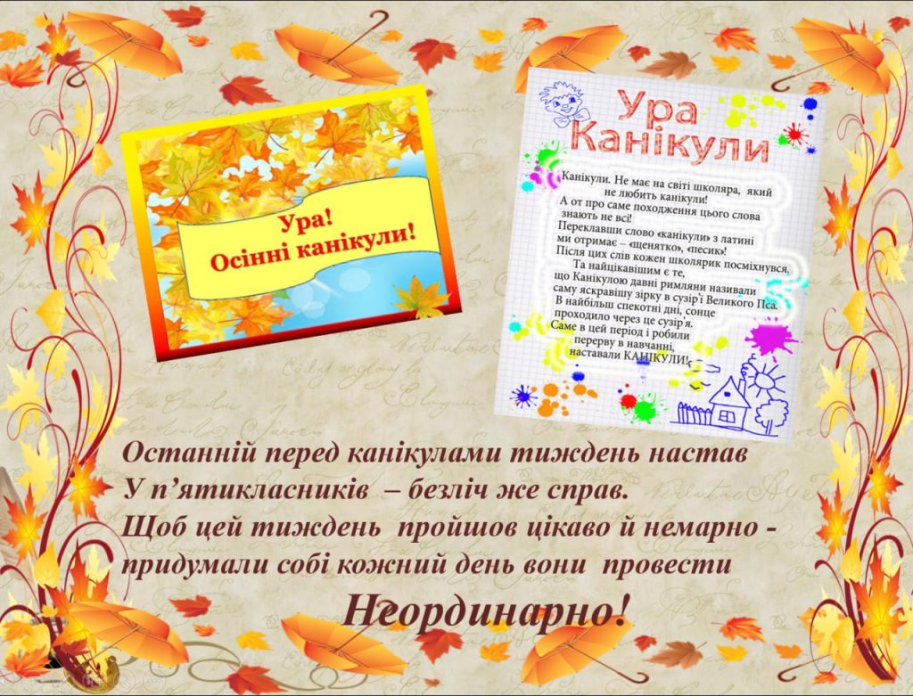 У 5 класі (класний керівник — Маслова Віталія Миколаївна) відбувся яскравий і неординарний тиждень, який запам’ятався дітям веселими емоціями, творчістю та дружньою атмосферою.
