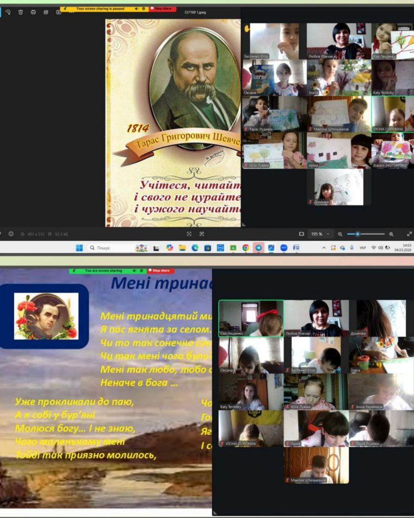На цьому тижні у ліцеї проходять заходи приурочені нашій історії, легенді, пам’яті, генію, людині- пророку – Тарасу Шевченку. Учні знайомляться з його життям, творчістю. Читають вірші, малюють ілюстрації до творів, переглядають презентації, відеоролики, бібліотечні виставки, вдумуються в слова, які є актуальними й у сьогоднішній час.